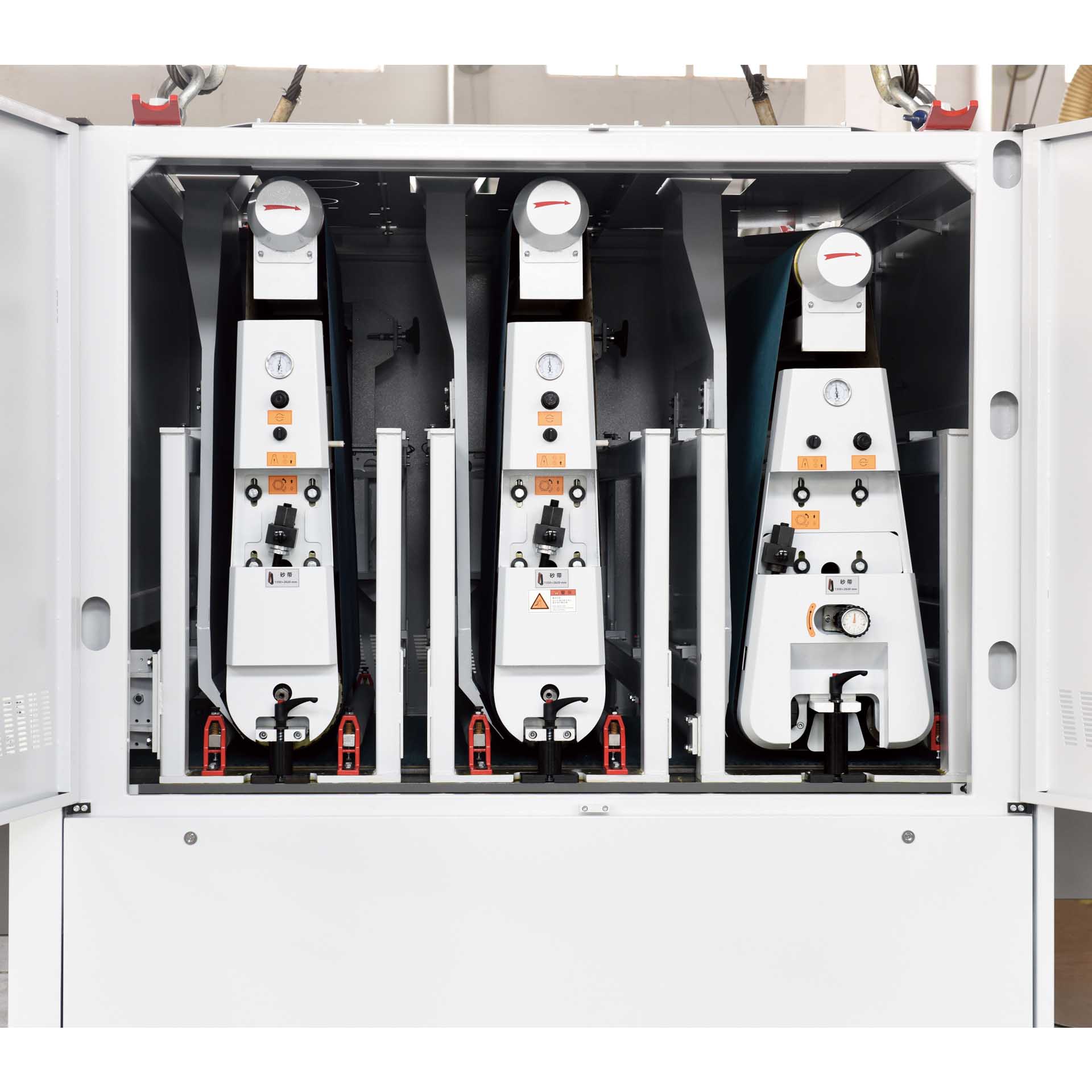 MOTIMAC is one of the best brands in China. Their technology is from Italy. Motimac Standard machines with contact rollers and stiff pad have working width from 700mm up to 1300mm. MT-line is their new Wide belt machine with Segment pads and technology from Italian Tagliabue. The machine is equipped with both cross belt, wide belt and Scotch Brite roller for super finish. All machines can be equipped according to customer’s request.